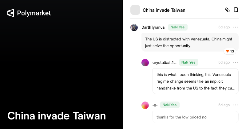 DarthTyranus commented on "Will China invade Taiwan by end of 2026?"