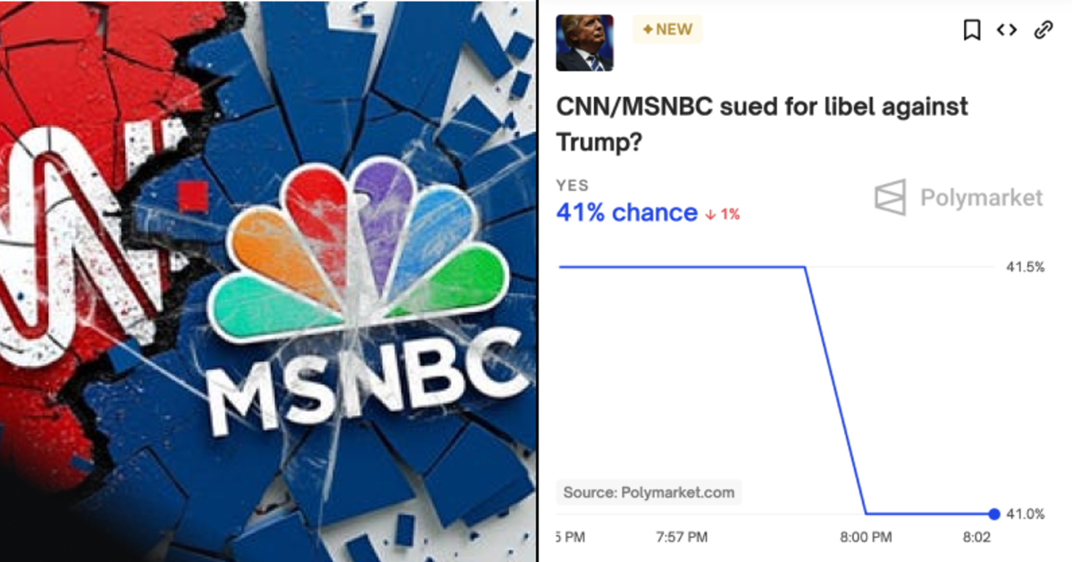 Polymarket | This market will resolve to "Yes" if either CNN, MSNBC, or their parent companies, are formally sued for or charged in a US court with libel or ...