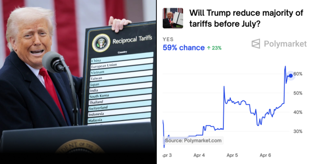 Polymarket | On April 2, 2025, Donald Trump announced reciprocal tariffs above the 10% baseline on 76 countries (59 countries specifically listed and the EU)...